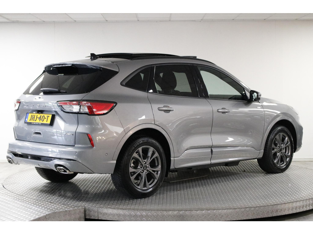 Deze Ford Kuga is uitgerust met een hybride motor – een efficiënte combinatie van brandstof en elektrisch rijden.