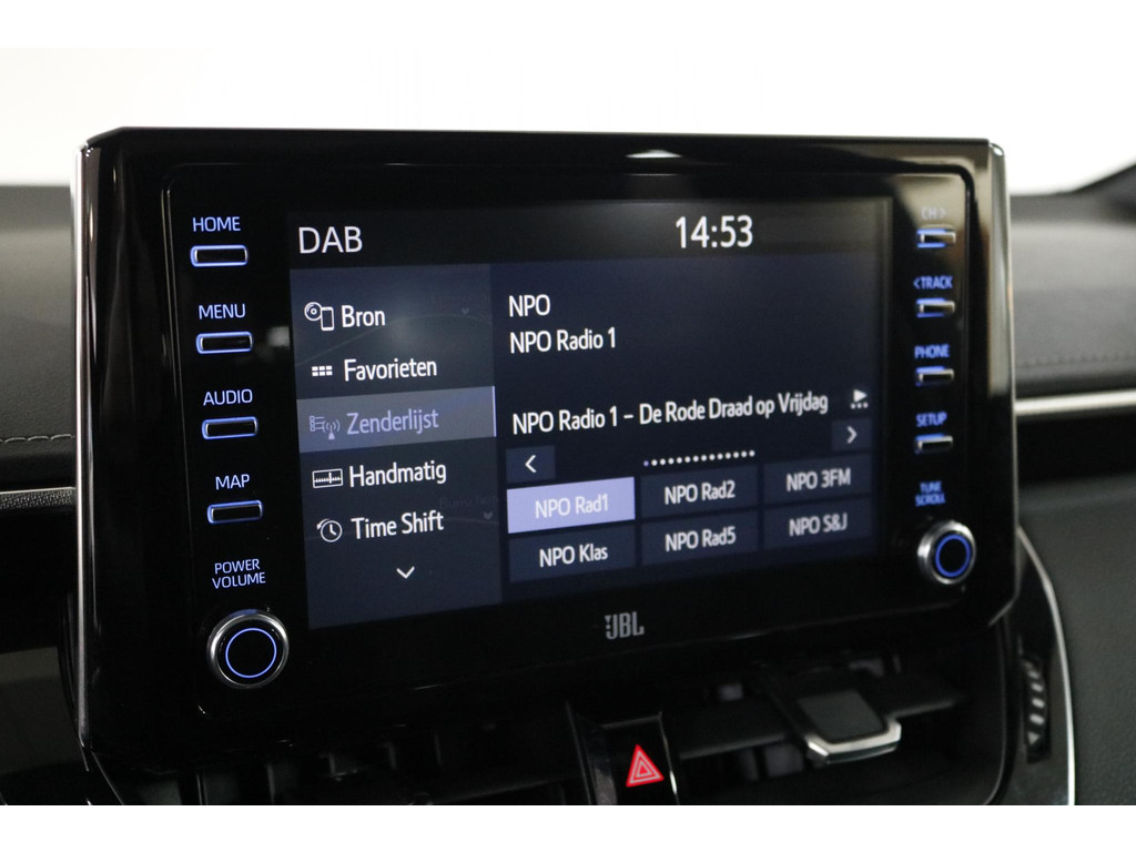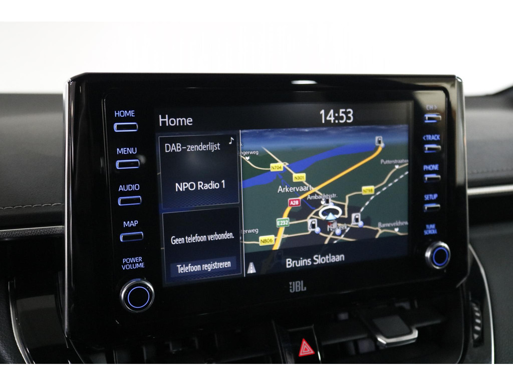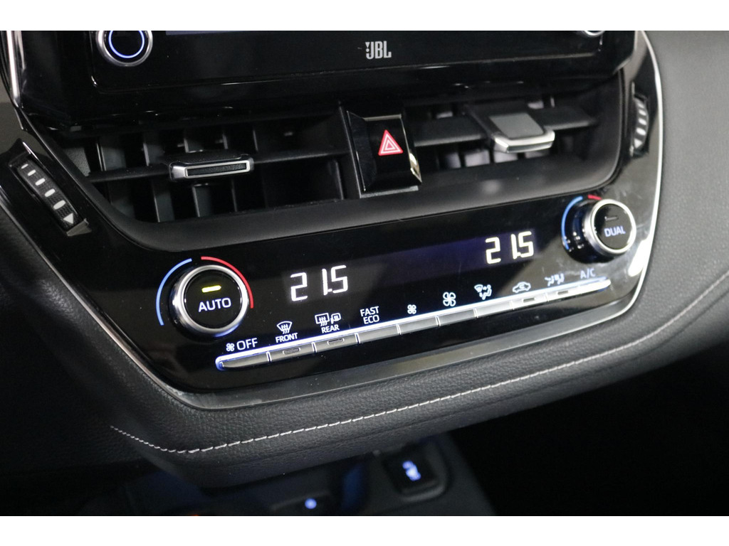 Ook op technologisch vlak is deze Toyota helemaal bij de tijd. Het digitale dashboard presenteert alle belangrijke informatie overzichtelijk in beeld. Inparkeren gaat eenvoudig dankzij de achteruitrijcamera en met adaptive cruise control rijdt u ontspannen lange afstanden, terwijl automatisch afstand wordt gehouden tot uw voorganger. Bedieningsgemak staat centraal: via spraakbediening of een handige app blijft u altijd verbonden met uw auto. Verder beschikt deze Corolla over een premium audiosysteem, full map navigatie, automatische airconditioning, sportstuur met schakelpaddels en draadloos opladen voor uw smartphone.