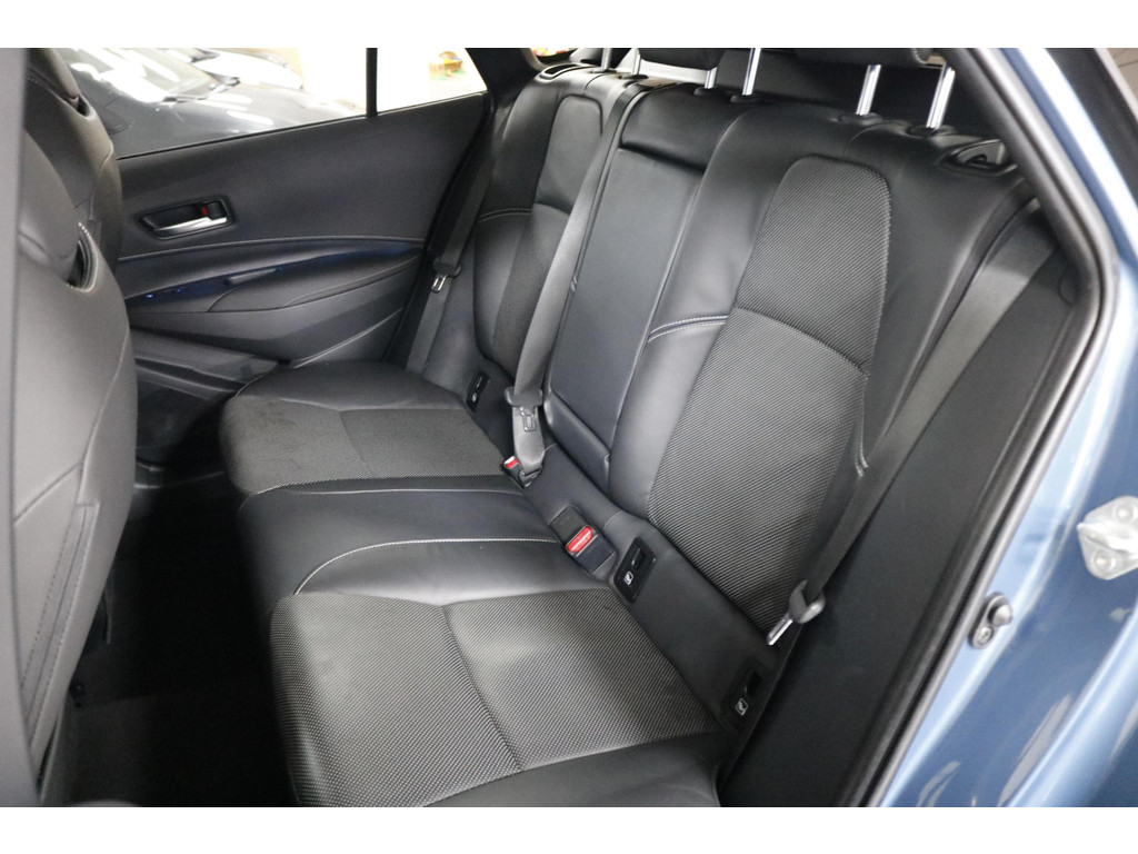 Bij het instappen valt direct het stijlvolle lederen interieur op. De sportstoelen zorgen voor een fijne zit en optimale ondersteuning, ook tijdens langere ritten. Zowel voor- als achterin geniet u van stoelverwarming, waardoor koude dagen geen enkele invloed hebben op uw comfort. Het elektrisch bediende glazen panoramadak zorgt voor een lichte en ruime sfeer in het interieur, terwijl de elektrische achterklep extra gemak biedt bij het in- en uitladen. De 18 inch lichtmetalen velgen, LED matrix verlichting en het extra getinte glas geven deze Corolla een moderne en sportieve uitstraling.