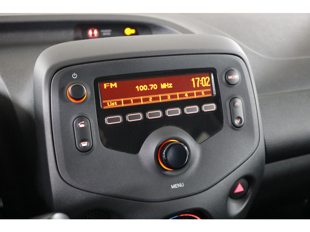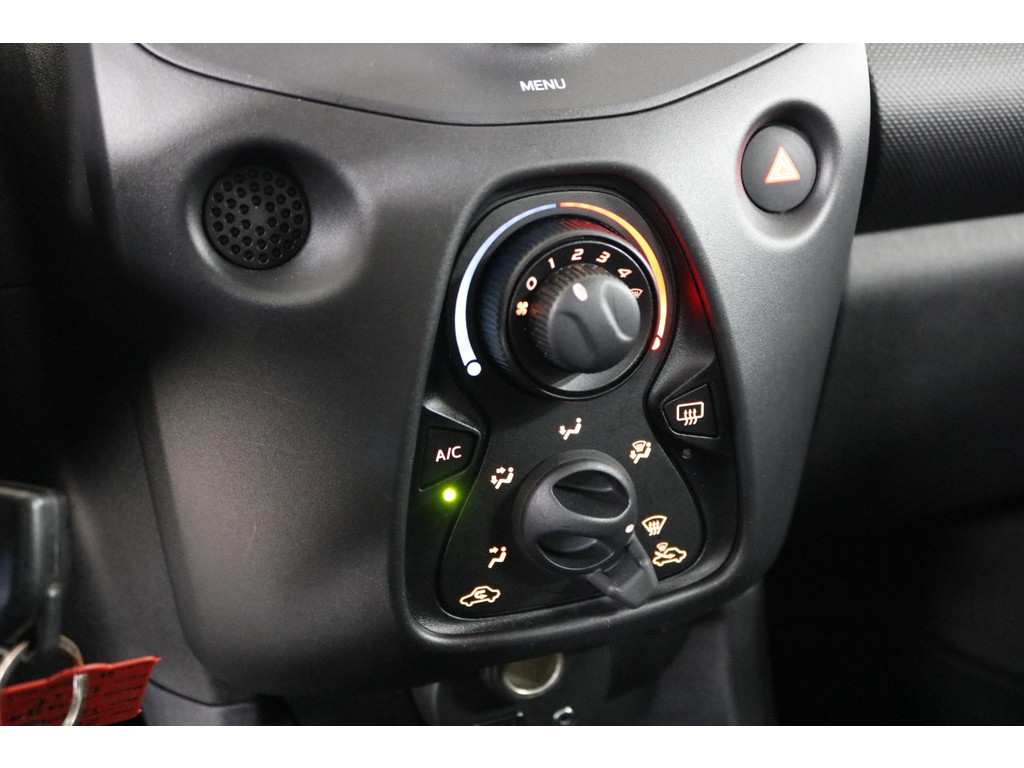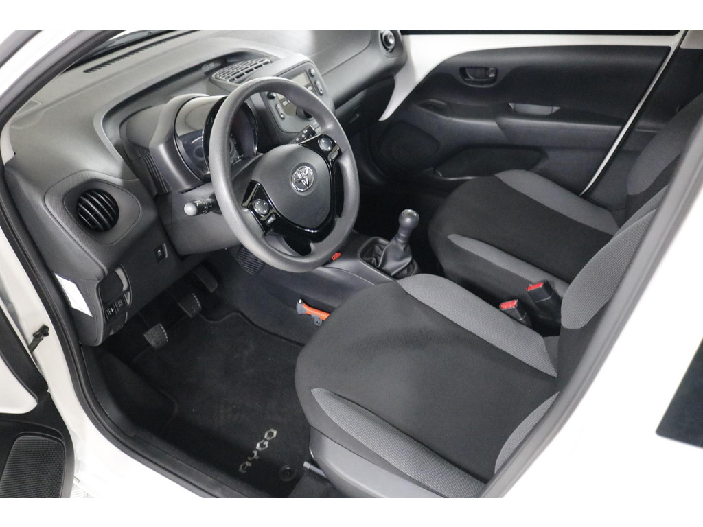 Binnenin ervaar je direct het praktische karakter van deze Aygo. Bedien het audiosysteem eenvoudig via de schakelaars op het stuur en geniet van een aangenaam klimaat dankzij de airconditioning. Verder beschikt de auto over centrale deurvergrendeling met afstandsbediening en een verstelbaar stuur voor een prettige zitpositie.