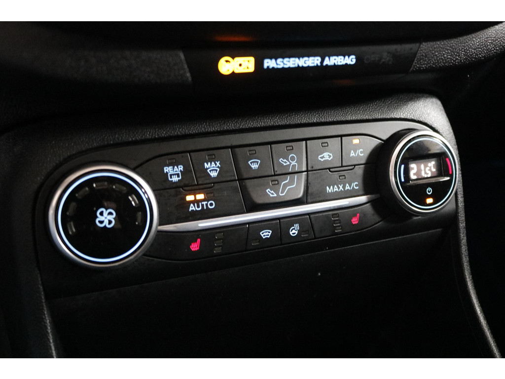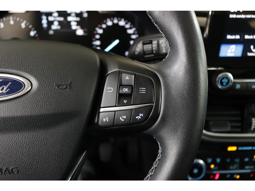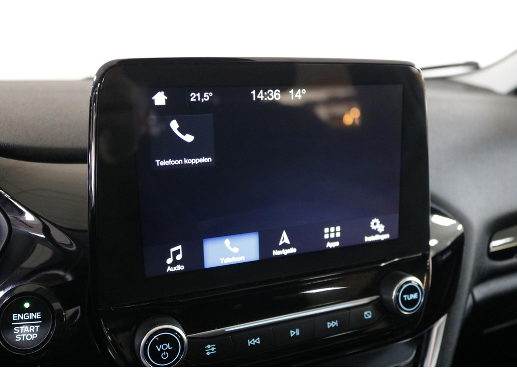 Inparkeren wordt eenvoudig met behulp van de achteruitrijcamera, die zelfs in krappe parkeervakken optimaal zicht biedt. Adaptive cruise control regelt automatisch uw snelheid en bewaart een veilige afstand tot uw voorligger. Connected Services verhogen de veiligheid en het gebruiksgemak tijdens iedere rit. Het high performance audiosysteem levert een indrukwekkende geluidskwaliteit, terwijl automatische airconditioning zorgt voor een aangenaam klimaat in de auto. Ook beschikt deze Fiesta over dashboardbediening met spraakfunctie, een full map navigatiesysteem, DAB-ontvangst, een regensensor, een automatisch dimmende binnenspiegel en centrale deurvergrendeling met afstandsbediening.