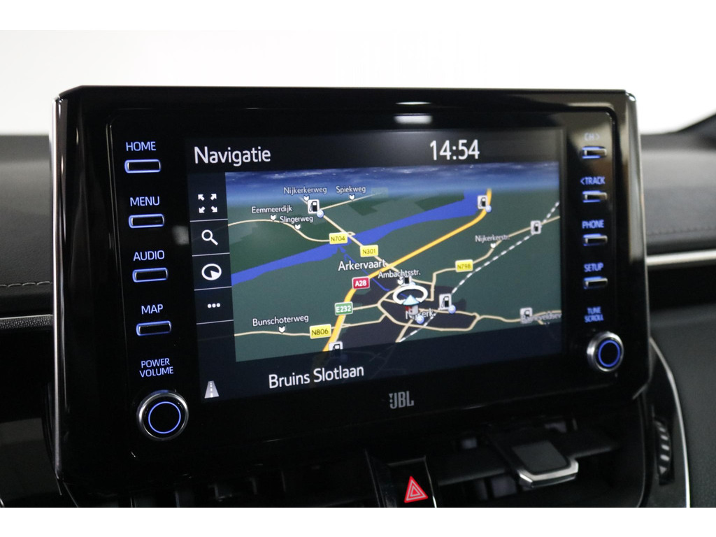 Ook op technologisch vlak is deze Toyota helemaal bij de tijd. Het digitale dashboard presenteert alle belangrijke informatie overzichtelijk in beeld. Inparkeren gaat eenvoudig dankzij de achteruitrijcamera en met adaptive cruise control rijdt u ontspannen lange afstanden, terwijl automatisch afstand wordt gehouden tot uw voorganger. Bedieningsgemak staat centraal: via spraakbediening of een handige app blijft u altijd verbonden met uw auto. Verder beschikt deze Corolla over een premium audiosysteem, full map navigatie, automatische airconditioning, sportstuur met schakelpaddels en draadloos opladen voor uw smartphone.