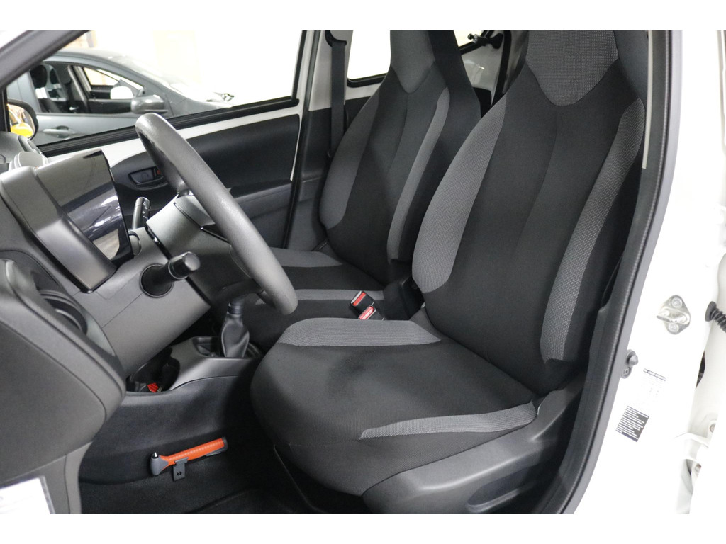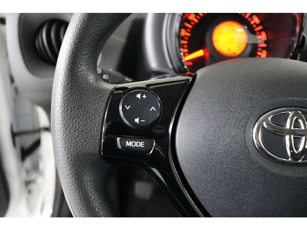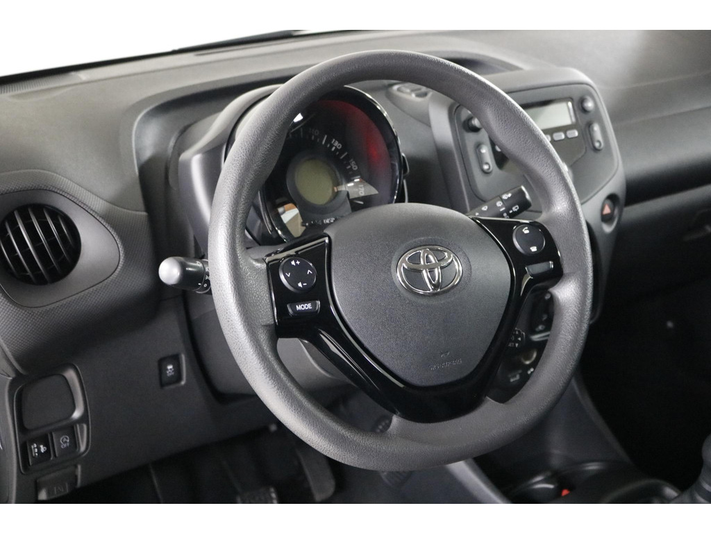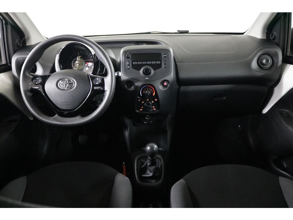 Binnenin ervaar je direct het praktische karakter van deze Aygo. Bedien het audiosysteem eenvoudig via de schakelaars op het stuur en geniet van een aangenaam klimaat dankzij de airconditioning. Verder beschikt de auto over centrale deurvergrendeling met afstandsbediening en een verstelbaar stuur voor een prettige zitpositie.