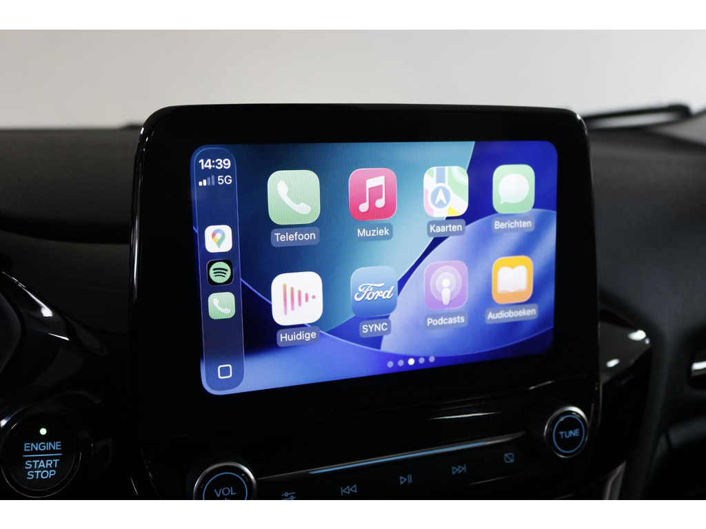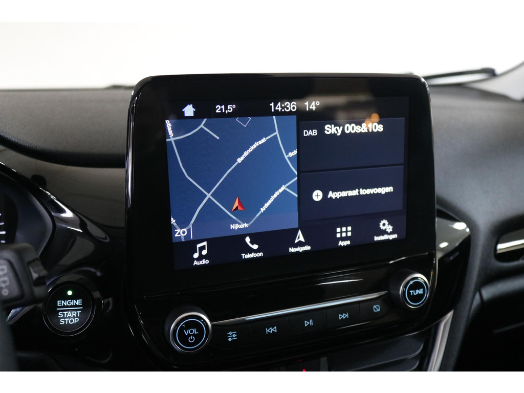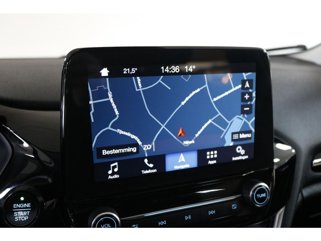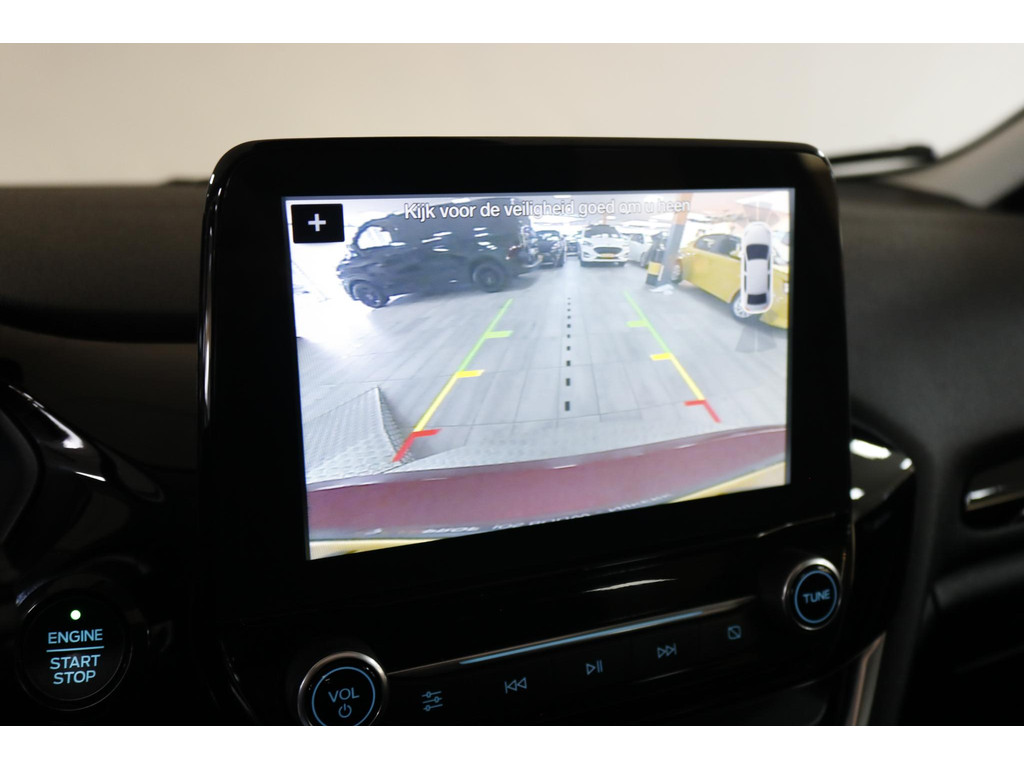 Inparkeren wordt eenvoudig met behulp van de achteruitrijcamera, die zelfs in krappe parkeervakken optimaal zicht biedt. Adaptive cruise control regelt automatisch uw snelheid en bewaart een veilige afstand tot uw voorligger. Connected Services verhogen de veiligheid en het gebruiksgemak tijdens iedere rit. Het high performance audiosysteem levert een indrukwekkende geluidskwaliteit, terwijl automatische airconditioning zorgt voor een aangenaam klimaat in de auto. Ook beschikt deze Fiesta over dashboardbediening met spraakfunctie, een full map navigatiesysteem, DAB-ontvangst, een regensensor, een automatisch dimmende binnenspiegel en centrale deurvergrendeling met afstandsbediening.